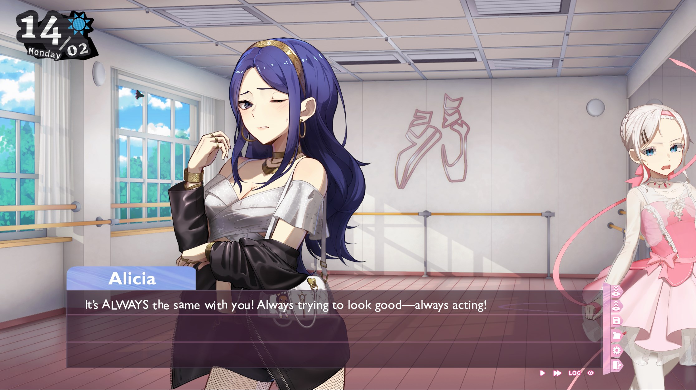 You play as a male trainee competing alongside five heroines and two male rivals in a televised survival program. Each week is divided into: